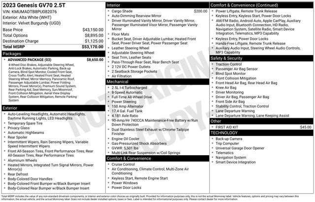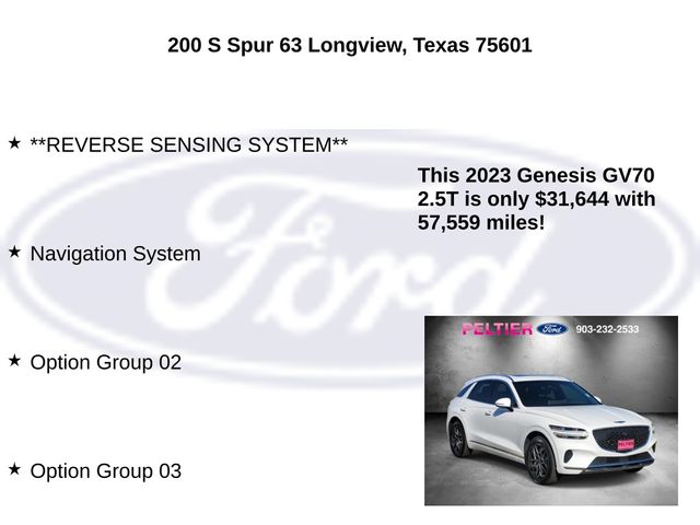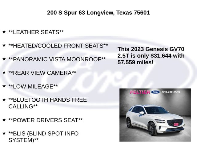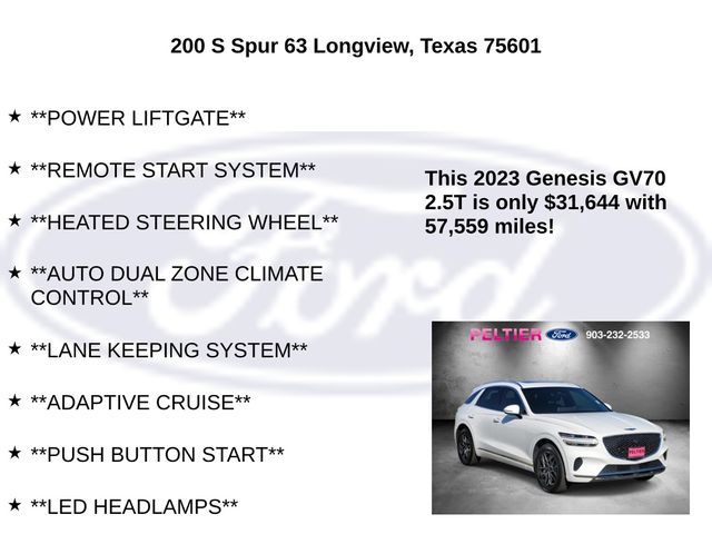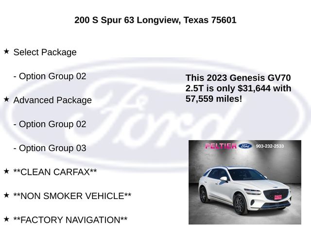 Clean CARFAX. Alta White 2023 Genesis 2.5L DOHC 4D Sport Utility GV70 2.5T 8-Speed Automatic with SHIFTRONIC AWD