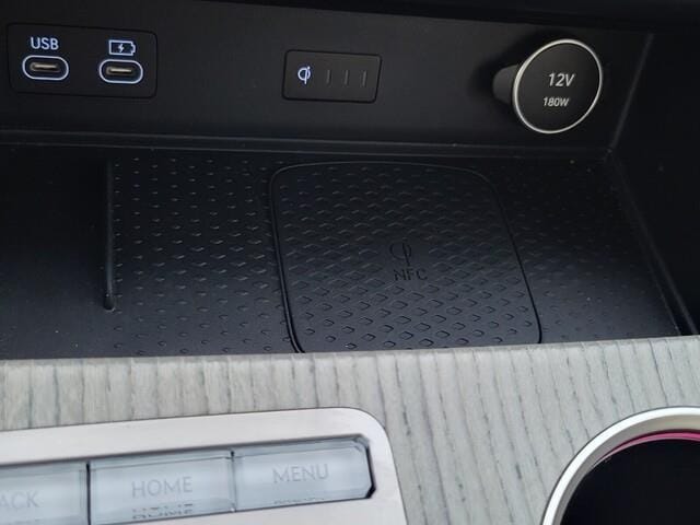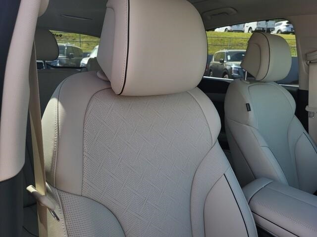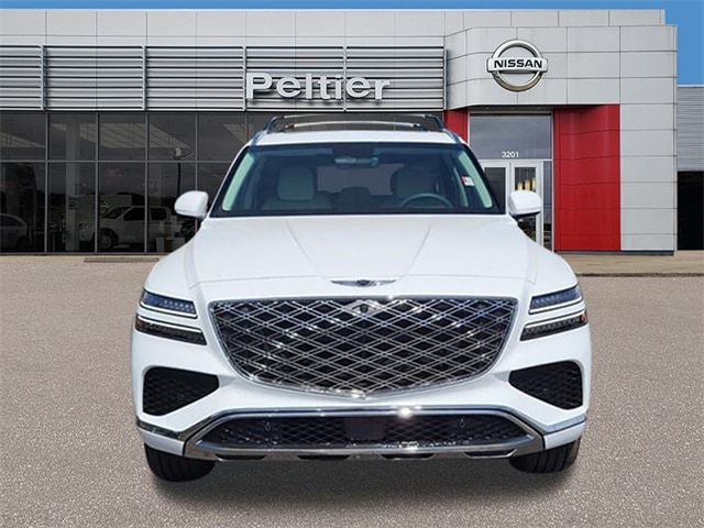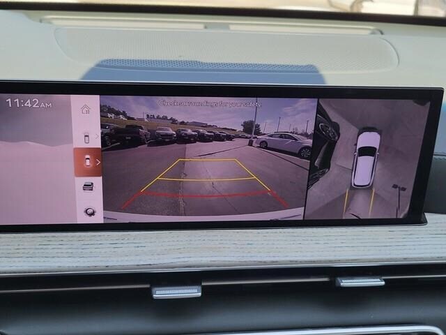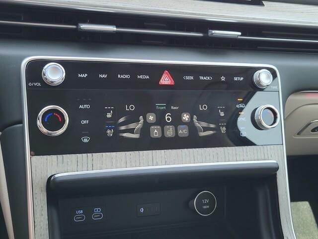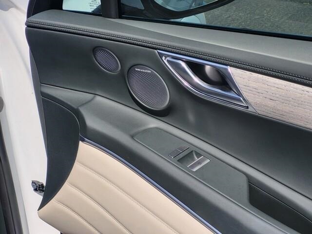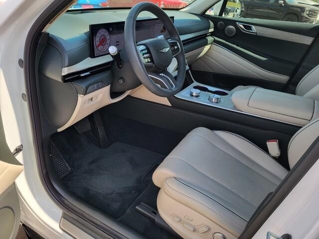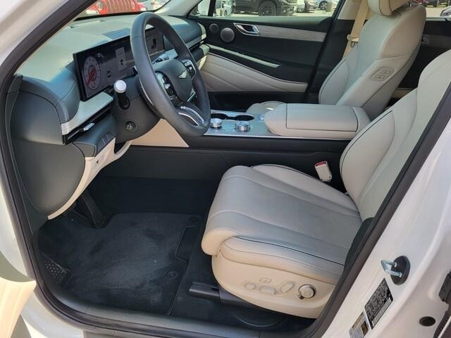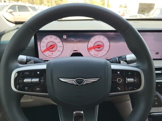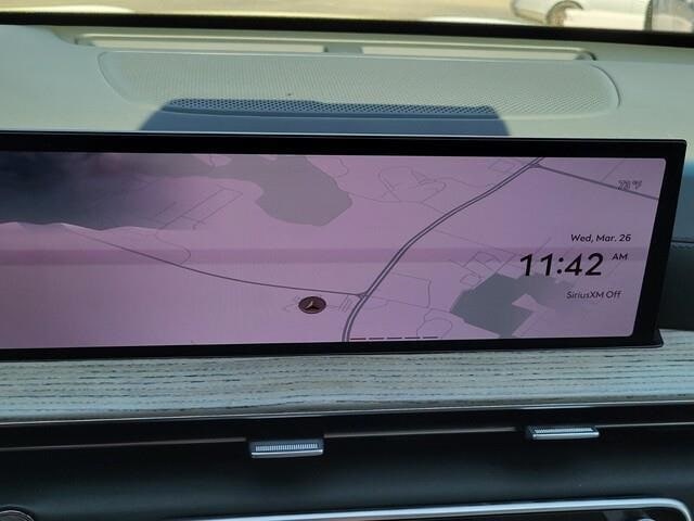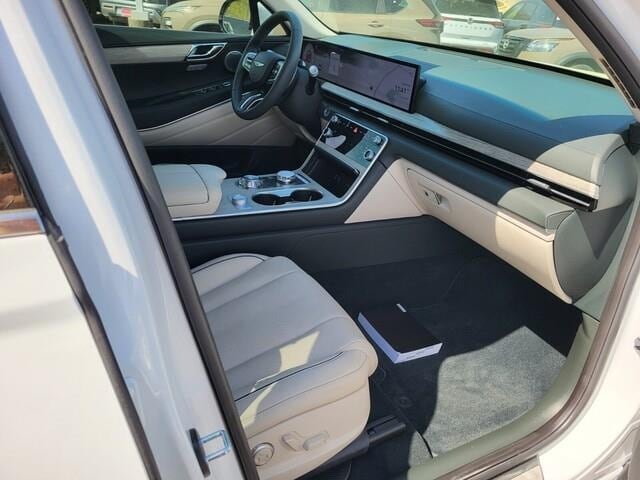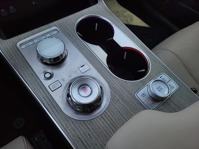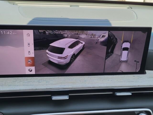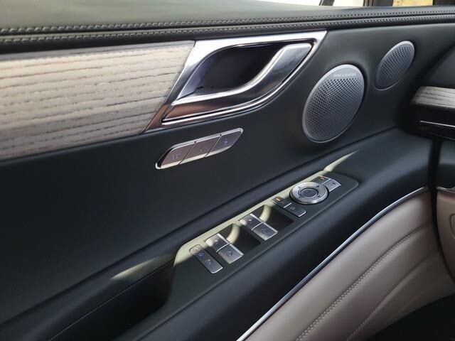 18 Speakers, Air Conditioning, AM/FM radio: SiriusXM, Automatic temperature control, Front dual zone A/C, Heads-Up Display, Memory seat, Navigation System, Power driver seat, Power steering, Power windows, Radio data system, Radio: AM/FM/SiriusXM/HD Bang & Olufsen Sound Sys, Rear air conditioning, Rear window defroster, Remote keyless entry, Steering wheel memory, Steering wheel mounted audio controls, 3rd row seats: split-bench, 4-Wheel Disc Brakes, ABS brakes, Adaptive suspension, Alloy wheels, Anti-whiplash front head restraints, Auto High-beam Headlights, Auto tilt-away steering wheel, Auto-dimming door mirrors, Auto-dimming Rear-View mirror, Brake assist, Bumpers: body-color, Compass, Delay-off headlights, Driver door bin, Driver vanity mirror, Dual front impact airbags, Dual front side impact airbags, Electronic Stability Control, Emergency communication system: Genesis Connected Services, Exterior Parking Camera Rear, Four wheel independent suspension, Front anti-roll bar, Front Bucket Seats, Front Center Armrest, Front reading lights, Fully automatic headlights, Garage door transmitter: HomeLink, Genuine wood console insert, Genuine wood dashboard insert, Genuine wood door panel insert, Heated & Ventilated Front Bucket Seats, Heated door mirrors, Heated front seats, Heated rear seats, Heated steering wheel, Illuminated entry, Knee airbag, Leather Seating Surfaces, Leather steering wheel, Low tire pressure warning, Occupant sensing airbag, Outside temperature display, Overhead airbag, Overhead console, Panic alarm, Passenger door bin, Passenger vanity mirror, Power door mirrors, Power Liftgate, Power moonroof, Power passenger seat, Rain sensing wipers, Rear anti-roll bar, Rear reading lights, Rear seat center armrest, Rear side impact airbag, Rear window wiper, Reclining 3rd row seat, Security system, Speed control, Speed-sensing steering, Speed-Sensitive Wipers, Split folding rear seat, Spoiler, Tachometer, Telescoping steering wheel, Tilt steering wheel, Traction control, Trip computer, Turn signal indicator mirrors, Variably intermittent wipers, Ventilated front seats, and Wheels: 20" x 8.5J Dark Gray Matte Alloy.