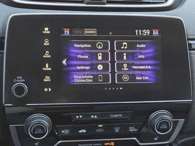 Navigation system: Honda Satellite-Linked Navigation System, 4-Wheel Disc Brakes, 5.64 Axle Ratio, 9 Speakers, ABS brakes, Adaptive Cruise Control: Adaptive Cruise Control (ACC) with Low-Speed Follow, Air Conditioning, Alloy wheels, AM/FM radio: SiriusXM, Apple CarPlay/Android Auto, Auto High-beam Headlights, Auto-dimming Rear-View mirror, Automatic temperature control, Blind Spot Information (BSI) System warning, Brake assist, Bumpers: body-color, Compass, Delay-off headlights, Driver door bin, Driver vanity mirror, Dual front impact airbags, Dual front side impact airbags, Electronic Stability Control, Exterior Parking Camera Rear, Forward collision: Collision Mitigation Braking System (CMBS) + FCW mitigation, Four wheel independent suspension, Front anti-roll bar, Front Bucket Seats, Front Center Armrest, Front dual zone A/C, Front fog lights, Front reading lights, Garage door transmitter: HomeLink, Heated door mirrors, Heated Front Bucket Seats, Heated front seats, Heated steering wheel, Illuminated entry, Leather Seat Trim, Leather Shift Knob, Low tire pressure warning, Memory seat, Occupant sensing airbag, Outside temperature display, Overhead airbag, Overhead console, Panic alarm, Passenger door bin, Passenger vanity mirror, Power door mirrors, Power driver seat, Power Liftgate, Power moonroof, Power passenger seat, Power steering, Power windows, Radio data system, Radio: 330-Watt AM/FM/HD/SiriusXM Prem Audio System, Rain sensing wipers, Rear anti-roll bar, Rear seat center armrest, Rear window defroster, Rear window wiper, Remote keyless entry, Roof rack: rails only, Security system, Speed control, Speed-sensing steering, Speed-Sensitive Wipers, Split folding rear seat, Spoiler, Steering wheel mounted audio controls, Tachometer, Telescoping steering wheel, Tilt steering wheel, Traction control, Trip computer, Turn signal indicator mirrors, Variably intermittent wipers, and Wheels: 19" Machine-Finished Alloy w/Gray Inserts.
