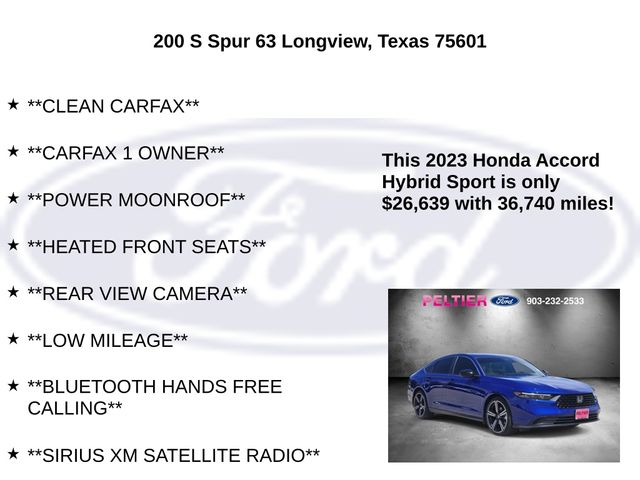 CARFAX One-Owner. Blue 2023 Honda 2.0L 16V DOHC 4D Sedan Accord Hybrid Sport eCVT FWD