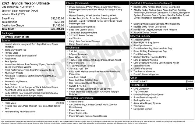 2021 Hyundai Tucson Ultimate 2.4L I4 DGI DOHC 16V FWD 6-Speed Automatic with Shiftronic Black Noir Pearl