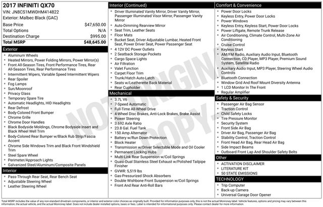 Odometer is 3430 miles below market average! 2017 INFINITI QX70 3.7L V6 AWD 7-Speed Automatic Malbec Black