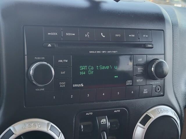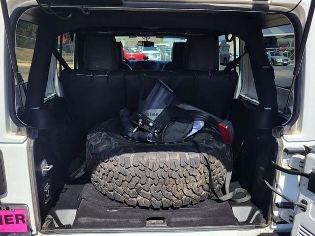 Connectivity Group (Tire Pressure Monitoring Display and Vehicle Information Center), Quick Order Package 24R, 17" x 7.5" Polished Mineral Gray Wheels, 3.73 Rear Axle Ratio, 4-Wheel Disc Brakes, 8 Speakers, ABS brakes, Air Conditioning, Alloy wheels, Alpine 9-Speaker w/All Weather Subwoofer, AM/FM radio, Audio Jack Input for Mobile Devices, Auto-dimming Rear-View mirror, Body Color 3-Piece Hard Top, Brake assist, CD player, Cloth Bucket Seats, Compass, Driver door bin, Driver vanity mirror, Dual front impact airbags, Electronic Stability Control, Front anti-roll bar, Front Bucket Seats, Front Center Armrest w/Storage, Front fog lights, Front reading lights, Fully automatic headlights, Heated door mirrors, Illuminated entry, Integrated roll-over protection, Leather steering wheel, Leather Wrapped Steering Wheel, Low tire pressure warning, Occupant sensing airbag, Outside temperature display, Panic alarm, Passenger door bin, Passenger vanity mirror, Performance Suspension, Power door mirrors, Power steering, Power windows, Radio data system, Radio: Uconnect 130 AM/FM/CD/MP3, Rear anti-roll bar, Remote keyless entry, Security system, Speed control, Split folding rear seat, Steering wheel mounted audio controls, Sunrider Soft Top, Tachometer, Tilt steering wheel, Traction control, Trip computer, and Variably intermittent wipers.