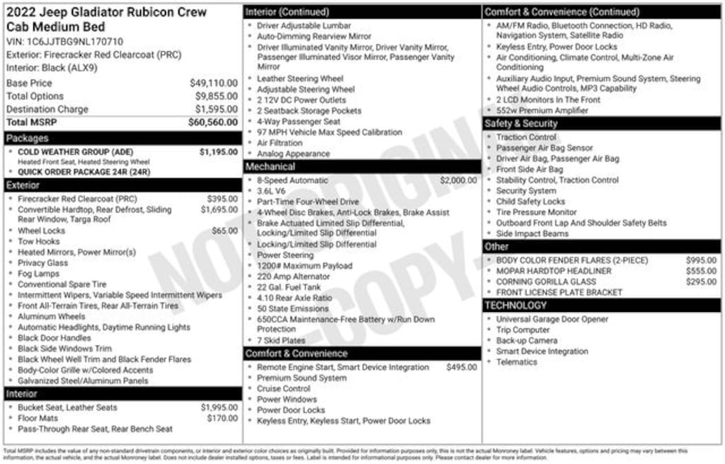 2022 Jeep Gladiator Rubicon 3.6L V6 24V VVT 4WD 8-Speed Automatic Firecracker Red Clearcoat