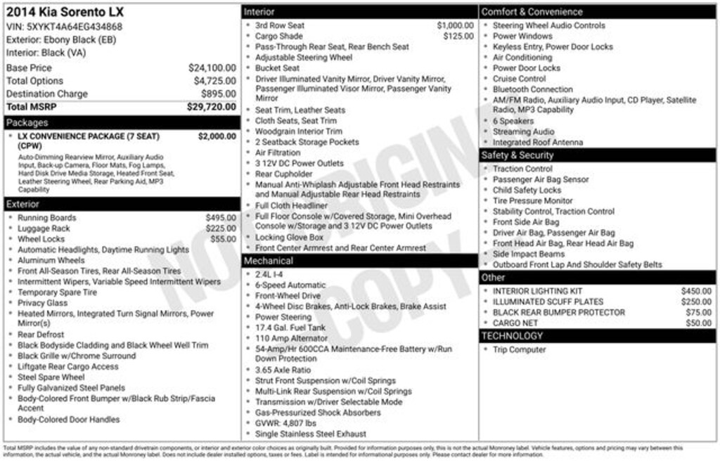 2014 Kia Sorento LX 2.4L I4 DGI DOHC Dual CVVT FWD 6-Speed Automatic with Sportmatic Ebony Black