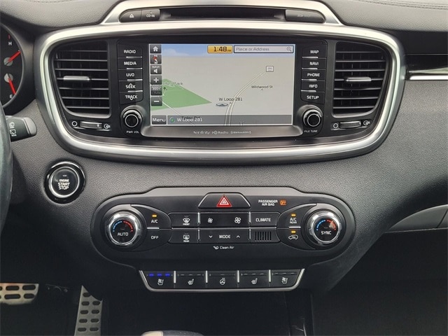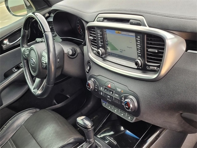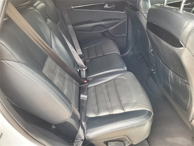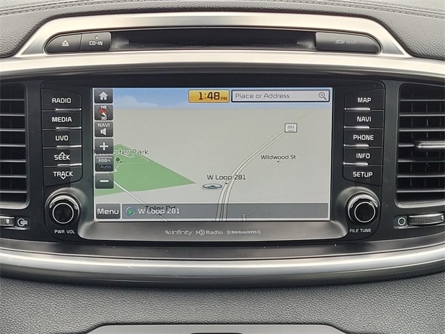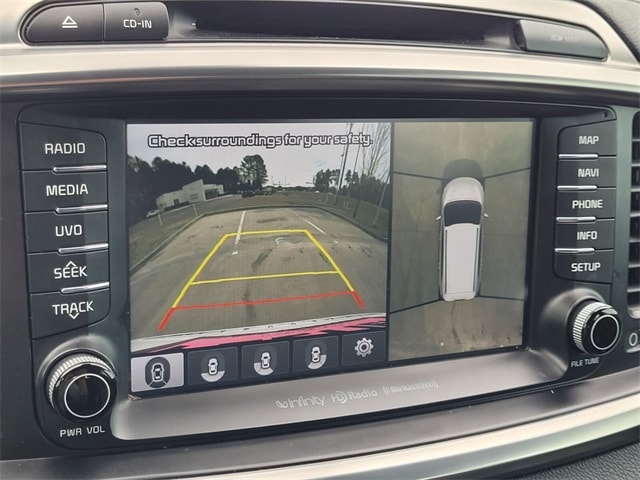 Navigation System, 3.041 Axle Ratio, 3rd row seats: split-bench, 4-Wheel Disc Brakes, 8 Speakers, ABS brakes, Air Conditioning, Alloy wheels, AM/FM radio: SiriusXM, Anti-whiplash front head restraints, Apple CarPlay & Android Auto, Auto-dimming Rear-View mirror, Automatic temperature control, Brake assist, Bumpers: body-color, Cargo Cover, Cargo Net, CD player, Chrome wheels, Delay-off headlights, Driver door bin, Driver vanity mirror, Dual front impact airbags, Dual front side impact airbags, Electronic Stability Control, Emergency communication system: UVO3, Four wheel independent suspension, Front anti-roll bar, Front Bucket Seats, Front Center Armrest, Front dual zone A/C, Front fog lights, Front reading lights, Fully automatic headlights, Garage door transmitter: HomeLink, Heated & Ventilated Front Bucket Seats, Heated door mirrors, Heated front seats, Heated rear seats, Heated steering wheel, High intensity discharge headlights: Xenon, Illuminated entry, Leather steering wheel, Low tire pressure warning, Memory seat, Occupant sensing airbag, Outside temperature display, Overhead airbag, Overhead console, Panic alarm, Passenger door bin, Passenger vanity mirror, Power door mirrors, Power driver seat, Power Liftgate, Power moonroof, Power passenger seat, Power steering, Power windows, Premium Nappa Leather Seat Trim, Radio: UVO eServices w/Premium Navigation, Rain sensing wipers, Rear air conditioning, Rear anti-roll bar, Rear reading lights, Rear seat center armrest, Rear window defroster, Rear window wiper, Remote keyless entry, Roof rack: rails only, Security system, Speed control, Speed-sensing steering, Split folding rear seat, Spoiler, Steering wheel mounted audio controls, SXL Black Metallic Nappa Leather Seat Trim, Tachometer, Telescoping steering wheel, Tilt steering wheel, Traction control, Trip computer, Turn signal indicator mirrors, Variably intermittent wipers, Ventilated front seats, and Wheels: 19" x 7.5 10-Spoke Chrome Finish Alloy.