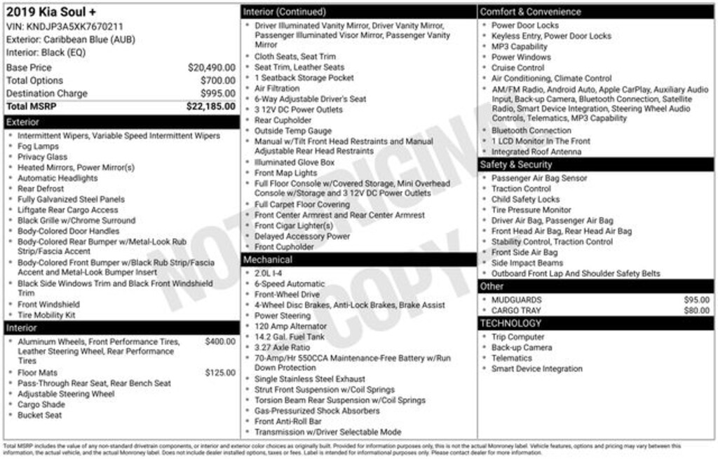 2019 Kia Soul + I4 FWD 6-Speed Automatic with Sportmatic Caribbean Blue