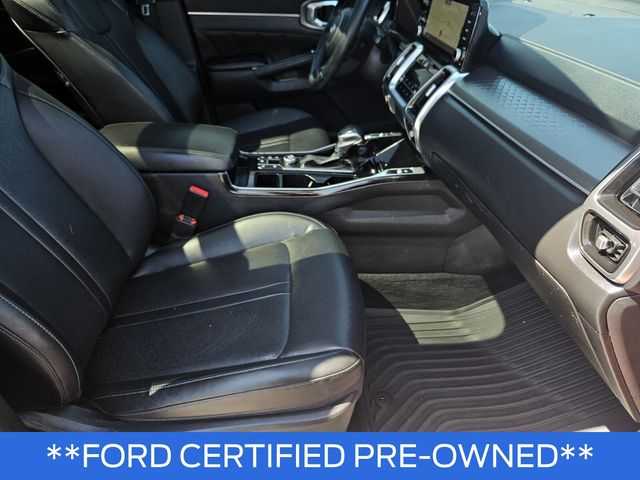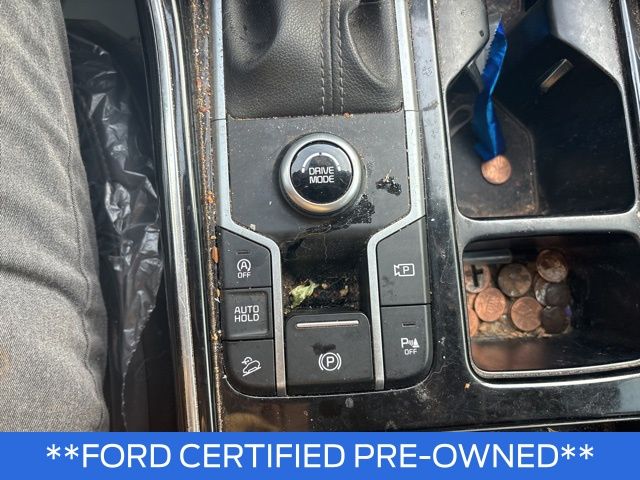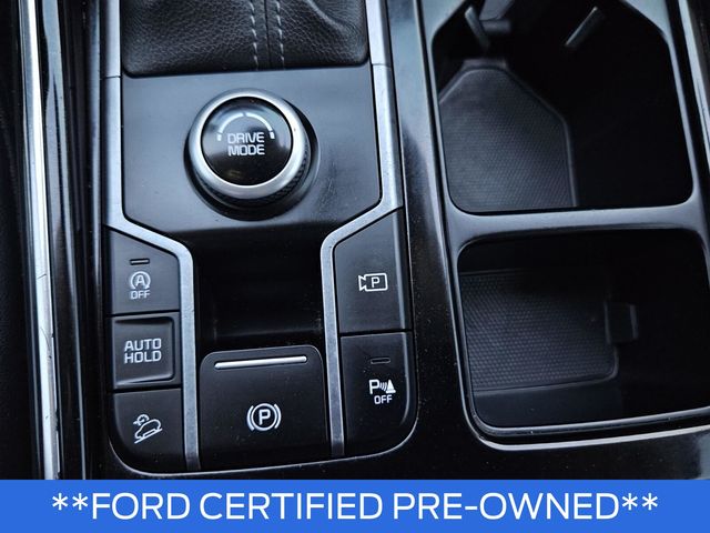 Ford Blue Advantage: Blue Certified Certified, Navigation System, 3.316 Axle Ratio, 3rd row seats: split-bench, 4-Wheel Disc Brakes, 6 Speakers, ABS brakes, Air Conditioning, Alloy wheels, AM/FM radio: SiriusXM, Apple CarPlay & Android Auto, Auto High-beam Headlights, Automatic temperature control, Brake assist, Bumpers: body-color, Cargo Net, Carpeted Floor Mats, Delay-off headlights, Driver door bin, Driver vanity mirror, Dual front impact airbags, Dual front side impact airbags, Electronic Stability Control, Emergency communication system: UVO link, Exterior Parking Camera Rear, Four wheel independent suspension, Front anti-roll bar, Front Bucket Seats, Front Center Armrest, Front dual zone A/C, Front fog lights, Front reading lights, Fully automatic headlights, Heated door mirrors, Heated Front Bucket Seats, Heated front seats, Illuminated entry, Knee airbag, Leather steering wheel, Low tire pressure warning, Mudguards, Occupant sensing airbag, Outside temperature display, Overhead airbag, Overhead console, Panic alarm, Passenger door bin, Passenger vanity mirror, Power door mirrors, Power driver seat, Power Liftgate, Power moonroof, Power passenger seat, Power steering, Power windows, Premium Leatherette Seat Trim, Radio data system, Radio: AM/FM Audio System w/Navigation, Rear air conditioning, Rear anti-roll bar, Rear reading lights, Rear window defroster, Rear window wiper, Remote keyless entry, Roof rack: rails only, Security system, Side Step Bars, Smart Key w/ Push Button and Remote Start, Speed control, Speed-sensing steering, Split folding rear seat, Spoiler, Steering wheel mounted audio controls, Tachometer, Telescoping steering wheel, Tilt steering wheel, Traction control, Trip computer, Turn signal indicator mirrors, Variably intermittent wipers, and Wheels: 20" Gloss Black Alloy.