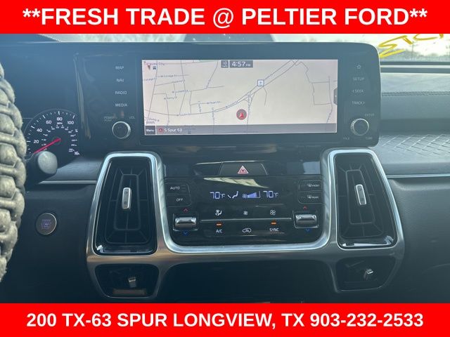 Navigation System, 3.316 Axle Ratio, 3rd row seats: split-bench, 4-Wheel Disc Brakes, 6 Speakers, ABS brakes, Air Conditioning, Alloy wheels, AM/FM radio: SiriusXM, Apple CarPlay & Android Auto, Auto High-beam Headlights, Automatic temperature control, Brake assist, Bumpers: body-color, Cargo Net, Carpeted Floor Mats, Delay-off headlights, Driver door bin, Driver vanity mirror, Dual front impact airbags, Dual front side impact airbags, Electronic Stability Control, Emergency communication system: UVO link, Exterior Parking Camera Rear, Four wheel independent suspension, Front anti-roll bar, Front Bucket Seats, Front Center Armrest, Front dual zone A/C, Front fog lights, Front reading lights, Fully automatic headlights, Heated door mirrors, Heated Front Bucket Seats, Heated front seats, Illuminated entry, Knee airbag, Leather steering wheel, Low tire pressure warning, Mudguards, Occupant sensing airbag, Outside temperature display, Overhead airbag, Overhead console, Panic alarm, Passenger door bin, Passenger vanity mirror, Power door mirrors, Power driver seat, Power Liftgate, Power moonroof, Power passenger seat, Power steering, Power windows, Premium Leatherette Seat Trim, Radio data system, Radio: AM/FM Audio System w/Navigation, Rear air conditioning, Rear anti-roll bar, Rear reading lights, Rear window defroster, Rear window wiper, Remote keyless entry, Roof rack: rails only, Security system, Side Step Bars, Smart Key w/ Push Button and Remote Start, Speed control, Speed-sensing steering, Split folding rear seat, Spoiler, Steering wheel mounted audio controls, Tachometer, Telescoping steering wheel, Tilt steering wheel, Traction control, Trip computer, Turn signal indicator mirrors, Variably intermittent wipers, and Wheels: 20" Gloss Black Alloy.