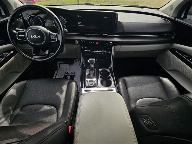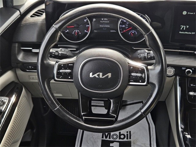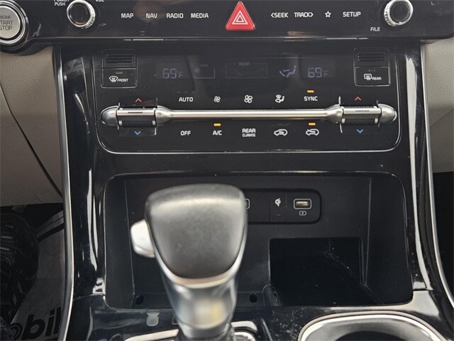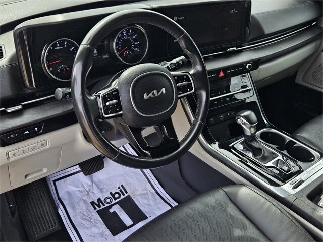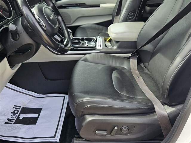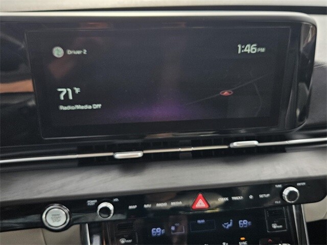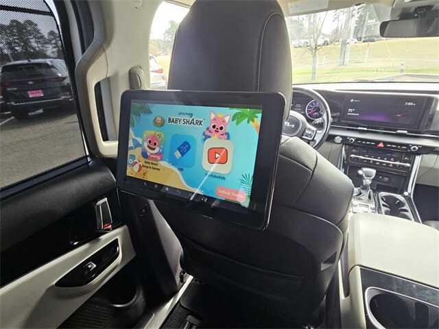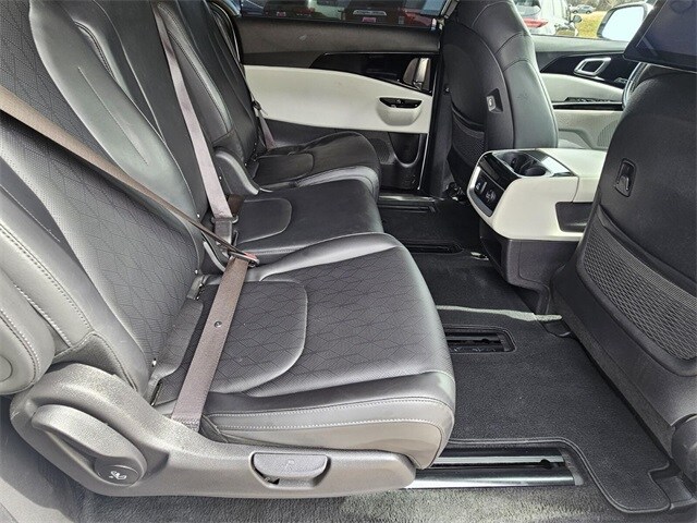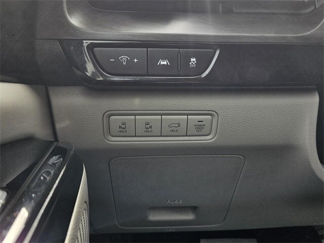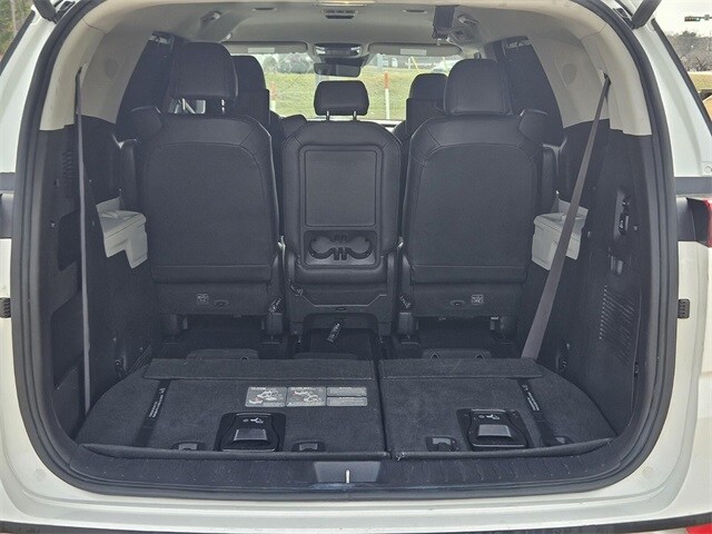 Navigation system: UVO eServices, 3.51 Axle Ratio, 3rd row seats: split-bench, 4-way Power Driver's Lumbar Support, 4-Wheel Disc Brakes, 8 Speakers, 8 Way Power Driver's Seat, 8 Way Power Front Passenger's Seat, ABS brakes, Air Conditioning, Alloy wheels, AM/FM radio: SiriusXM, Apple CarPlay & Android Auto, Artificial Leather Seat Trim, Auto High-beam Headlights, Automatic temperature control, Brake assist, Bumpers: body-color, Carpeted Floor Mats (8-Passenger), Compass, Delay-off headlights, Driver door bin, Driver vanity mirror, Driver's Seat & Mirrors Memory System, Dual front impact airbags, Dual front side impact airbags, Electronic Stability Control, Emergency communication system: UVO eServices, Four wheel independent suspension, Front anti-roll bar, Front Bucket Seats, Front Center Armrest, Front dual zone A/C, Front fog lights, Front reading lights, Fully automatic headlights, Heated & Ventilated Front Bucket Seats, Heated door mirrors, Heated front seats, Illuminated entry, Knee airbag, Leather Shift Knob, Leather steering wheel, Low tire pressure warning, Memory seat, Occupant sensing airbag, Outside temperature display, Overhead airbag, Overhead console, Panic alarm, Passenger door bin, Passenger vanity mirror, Power door mirrors, Power driver seat, Power Liftgate, Power passenger seat, Power steering, Power windows, Radio: AM/FM/HD Audio System, Rear air conditioning, Rear anti-roll bar, Rear reading lights, Rear window defroster, Rear window wiper, Reclining 3rd row seat, Remote keyless entry, Roof rack: rails only, Security system, Speed control, Speed-sensing steering, Split folding rear seat, Spoiler, Steering wheel mounted audio controls, Tachometer, Telescoping steering wheel, Tilt steering wheel, Traction control, Trip computer, Turn signal indicator mirrors, Variably intermittent wipers, Ventilated front seats, and Wheels: 7.5J x 19" Black Painted Alloy.