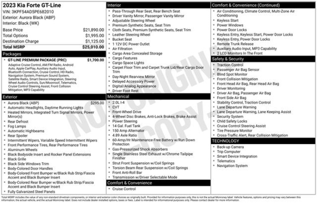 2023 Kia Forte GT-Line 2.0L I4 MPI FWD CVT Aurora Black Pearl