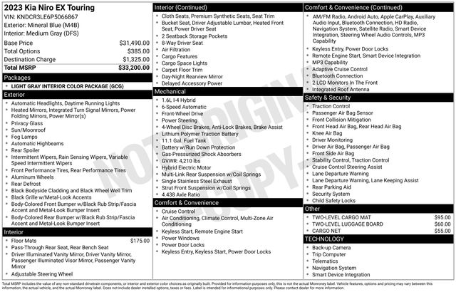 2023 Kia Niro EX Touring 1.6L I4 DGI Hybrid DOHC 16V LEV3-SULEV30 FWD 6-Speed Automatic Mineral Blue