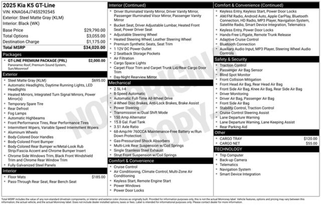 2025 Kia K5 GT-Line I4 AWD 8-Speed Automatic Steel Matte Gray