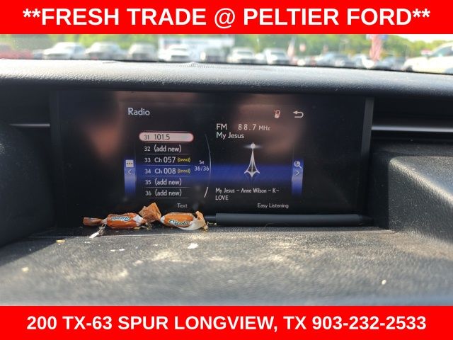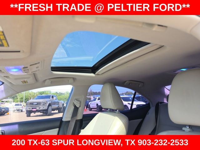 Alpine Artificial Leather, 17" x 7.5" 10-Spoke Aluminum Alloy Wheels, 4-Wheel Disc Brakes, 8 Speakers, ABS brakes, Air Conditioning, Alloy wheels, AM/FM radio: SiriusXM, Auto-dimming Rear-View mirror, Automatic temperature control, Brake assist, Bumpers: body-color, CD player, Compass, Delay-off headlights, Driver door bin, Driver vanity mirror, Dual front impact airbags, Dual front side impact airbags, Electronic Stability Control, Emergency communication system: Safety Connect, Four wheel independent suspension, Front anti-roll bar, Front Bucket Seats, Front Center Armrest, Front dual zone A/C, Front fog lights, Front reading lights, Fully automatic headlights, Garage door transmitter: HomeLink, Heated door mirrors, High intensity discharge headlights: Bi-Xenon, Illuminated entry, Knee airbag, Lexus Premium Audio System, Low tire pressure warning, NuLuxe Seat Trim, Occupant sensing airbag, Outside temperature display, Overhead airbag, Overhead console, Panic alarm, Passenger door bin, Passenger vanity mirror, Power door mirrors, Power driver seat, Power moonroof, Power passenger seat, Power steering, Power windows, Radio data system, Rear anti-roll bar, Rear reading lights, Rear seat center armrest, Rear side impact airbag, Rear window defroster, Remote keyless entry, Security system, Speed control, Speed-sensing steering, Speed-Sensitive Wipers, Split folding rear seat, Steering wheel mounted audio controls, Tachometer, Telescoping steering wheel, Tilt steering wheel, Traction control, Trip computer, Turn signal indicator mirrors, and Variably intermittent wipers.