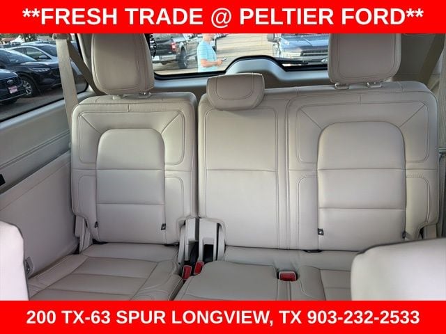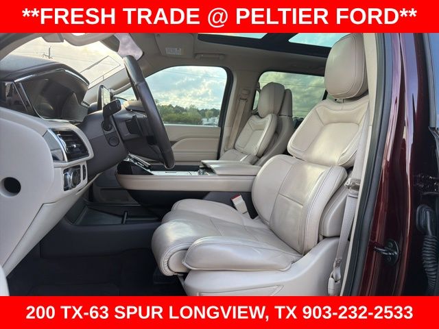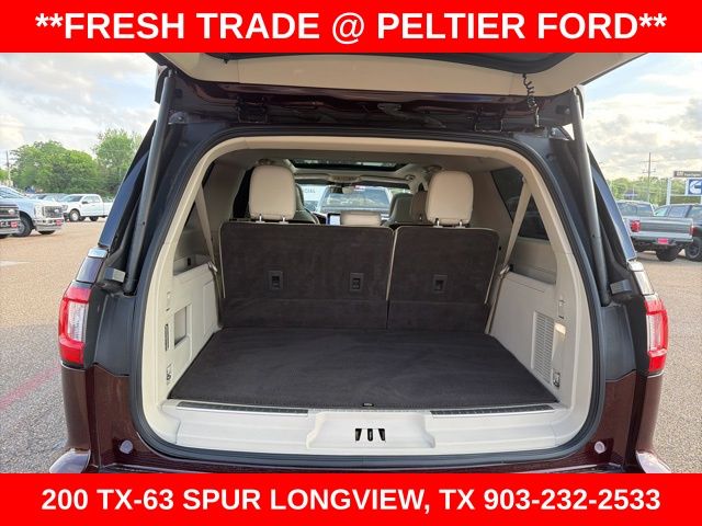 Equipment Group 300A Reserve, GVWR: 7,800 lbs Payload Package, Heavy-Duty Trailer Tow Package (Electronic Traction Assist (eLSD), Heavy-Duty Radiator, Pro Trailer Backup Assist, and Trailer Brake Controller (TBC)), Technology Package (Adaptive Cruise Control, Auto High Beam, Auto Park Active Park Assist, Head-Up Display, Lane Keeping System, and Pre-Collision Assist w/Pedestrian Detection), 14 Speakers, 3.73 Axle Ratio, 30-Way Perfect Position Seating w/Active Motion, 3rd row seats: split-bench, 4-Wheel Disc Brakes, ABS brakes, Adaptive suspension, Adjustable pedals, Air Conditioning, Alloy wheels, AM/FM radio: SiriusXM, AppLink/Apple CarPlay and Android Auto, Audio memory, Auto tilt-away steering wheel, Auto-dimming door mirrors, Auto-dimming Rear-View mirror, Auto-leveling suspension, Automatic temperature control, Bodyside moldings, Brake assist, Bumpers: body-color, Compass, Delay-off headlights, Driver door bin, Driver vanity mirror, Driver's Seat Mounted Armrest, Dual front impact airbags, Dual front side impact airbags, Electronic Stability Control, Emergency communication system: 911 Assist, Exterior Parking Camera Rear, Four wheel independent suspension, Front anti-roll bar, Front Bucket Seats, Front dual zone A/C, Front fog lights, Front License Plate Bracket, Front reading lights, Fully automatic headlights, Garage door transmitter: HomeLink, Genuine wood dashboard insert, Genuine wood door panel insert, Heated door mirrors, Heated front seats, Heated rear seats, Heated steering wheel, HVAC memory, Illuminated entry, Inflatable Rear Safety Belts - 2nd Row, Leather steering wheel, Low tire pressure warning, Memory seat, Navigation System, Occupant sensing airbag, Outside temperature display, Overhead airbag, Overhead console, Panic alarm, Passenger door bin, Passenger seat mounted armrest, Passenger vanity mirror, Pedal memory, Power door mirrors, Power driver seat, Power Liftgate, Power moonroof: Panoramic Vista Roof, Power passenger seat, Power steering, Power windows, Premium Lthr Htd/Ventilated Low-Back Bucket Seats, Radio data system, Radio: Revel AM/FM/HD/MP3 Audio System, Rain sensing wipers, Rear air conditioning, Rear anti-roll bar, Rear audio controls, Rear reading lights, Rear window defroster, Rear window wiper, Reclining 3rd row seat, Remote keyless entry, Revel Ultima Audio System w/20 Speakers, Roof rack: rails only, Security system, Single-CD Player, SiriusXM Radio, Speed control, Speed-sensing steering, Speed-Sensitive Wipers, Split folding rear seat, Spoiler, Steering wheel memory, Steering wheel mounted audio controls, SYNC 3 Communications & Entertainment System, Tachometer, Telescoping steering wheel, Tilt steering wheel, Traction control, Trip computer, Turn signal indicator mirrors, Variably intermittent wipers, Ventilated front seats, and Wheels: 22" 16-Spoke Ultra-Bright Machined Alum.