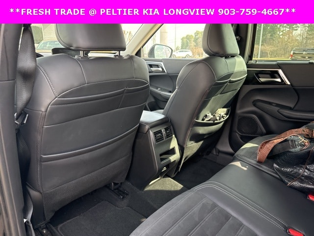 3rd row seats: split-bench, 4-Wheel Disc Brakes, ABS brakes, Air Conditioning, Alloy wheels, AM/FM radio: SiriusXM, Android Auto & Apple CarPlay, Auto High-beam Headlights, Automatic temperature control, Axle Ratio: 5.694, Brake assist, Bumpers: body-color, Driver door bin, Driver vanity mirror, Dual front impact airbags, Dual front side impact airbags, Electronic Stability Control, Emergency communication system: Mitsubishi Connect w/ 24-month trial, Four wheel independent suspension, Front anti-roll bar, Front Bucket Seats, Front Center Armrest w/Storage, Front dual zone A/C, Front fog lights, Front reading lights, Fully automatic headlights, Heated door mirrors, Illuminated entry, Knee airbag, Leather Shift Knob, Leather steering wheel, Low tire pressure warning, Occupant sensing airbag, Outside temperature display, Overhead airbag, Overhead console, Panic alarm, Passenger door bin, Passenger vanity mirror, Power door mirrors, Power driver seat, Power Liftgate, Power steering, Power windows, Radio data system, Rain sensing wipers, Rear anti-roll bar, Rear seat center armrest, Rear side impact airbag, Rear window defroster, Rear window wiper, Reclining 3rd row seat, Remote keyless entry, Security system, Speed control, Speed-Sensitive Wipers, Split folding rear seat, Spoiler, Steering wheel mounted audio controls, Synthetic Leather Seat Trim, Tachometer, Telescoping steering wheel, Tilt steering wheel, Traction control, Trip computer, Turn signal indicator mirrors, and Variably intermittent wipers.