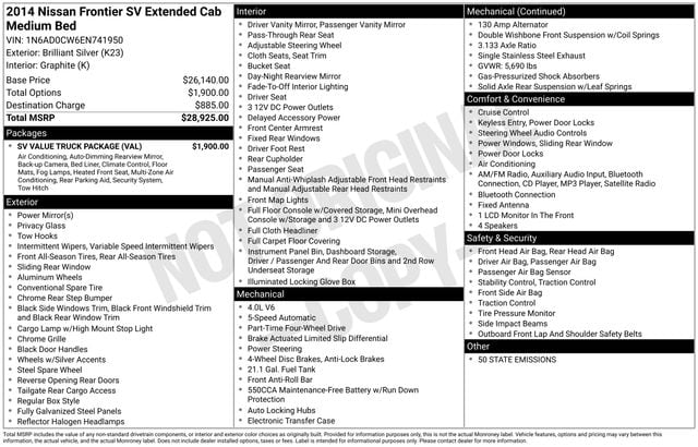 2014 Nissan Frontier SV 4.0L V6 DOHC 4WD 5-Speed Automatic with Overdrive Brilliant Silver