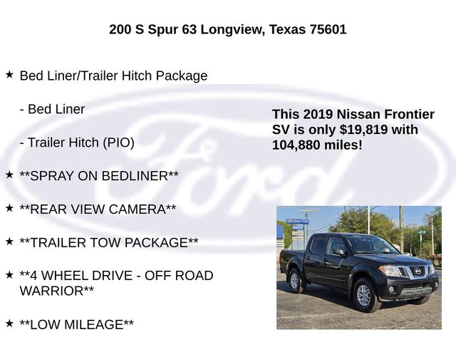 Magnetic Black Pearl 2019 Nissan 4.0L V6 DOHC 4D Crew Cab Frontier SV 5-Speed Automatic with Overdrive 4WD