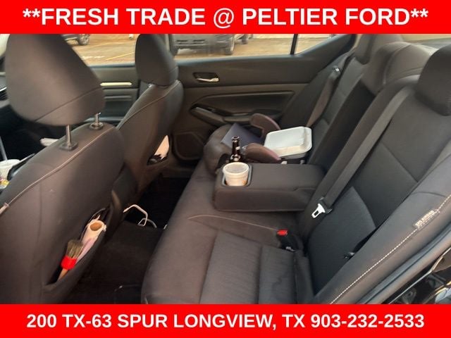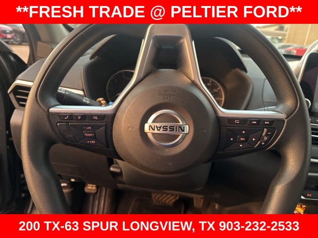 CVT with Xtronic, 17" Alloy Wheels, 4-Wheel Disc Brakes, 6 Speakers, ABS brakes, Air Conditioning, Alloy wheels, AM/FM radio: SiriusXM, Auto High-beam Headlights, Blind Spot Warning, Brake assist, Bumpers: body-color, Cloth Seat Trim, Delay-off headlights, Driver door bin, Driver vanity mirror, Dual front impact airbags, Dual front side impact airbags, Electronic Stability Control, Floor Mats/Trunk Mat/Hideaway Net, Four wheel independent suspension, Front anti-roll bar, Front Bucket Seats, Front Center Armrest, Front reading lights, Fully automatic headlights, Illuminated entry, Knee airbag, Low tire pressure warning, NissanConnect featuring Apple CarPlay and Android Auto, Occupant sensing airbag, Outside temperature display, Overhead airbag, Overhead console, Panic alarm, Passenger door bin, Passenger vanity mirror, Power door mirrors, Power driver seat, Power steering, Power windows, Radio data system, Radio: AM/FM Audio System, Rear anti-roll bar, Rear Parking Sensors, Rear reading lights, Rear seat center armrest, Rear side impact airbag, Rear window defroster, Remote keyless entry, Security system, Speed control, Speed-sensing steering, Speed-Sensitive Wipers, Split folding rear seat, Sport steering wheel, Steering wheel mounted audio controls, Tachometer, Telescoping steering wheel, Tilt steering wheel, Traction control, Trip computer, and Variably intermittent wipers.