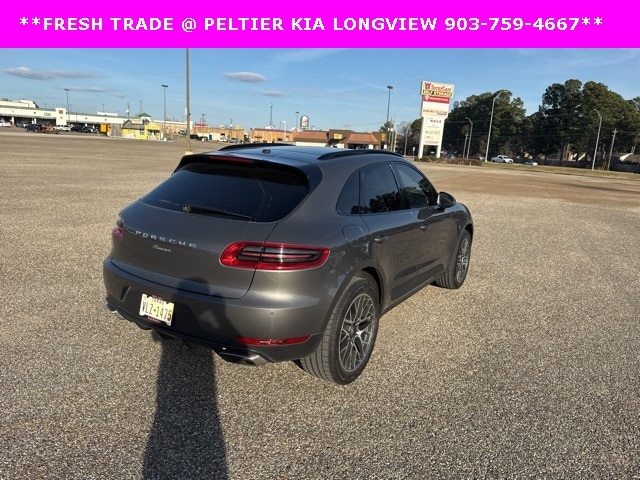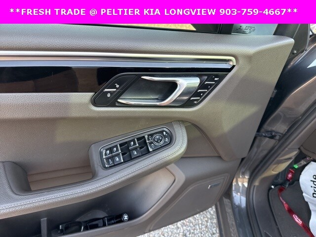 4-Wheel Disc Brakes, 8 Speakers, 8-Way Power Bucket Seats, ABS brakes, Air Conditioning, Alloy wheels, AM/FM radio: SiriusXM, Automatic temperature control, Axle Ratio: 4.13, Brake assist, Bumpers: body-color, CD player, Delay-off headlights, Driver door bin, Driver vanity mirror, Dual front impact airbags, Dual front side impact airbags, DVD-Audio, Electronic Stability Control, Exterior Parking Camera Rear, Four wheel independent suspension, Front anti-roll bar, Front Bucket Seats, Front Center Armrest, Front dual zone A/C, Front fog lights, Front reading lights, Fully automatic headlights, Garage door transmitter: HomeLink, Headlight cleaning, Heated door mirrors, High intensity discharge headlights: Bi-Xenon, Illuminated entry, Knee airbag, Leather Shift Knob, Low tire pressure warning, Occupant sensing airbag, Outside temperature display, Overhead airbag, Overhead console, Panic alarm, Partial Leather/Alcantara Seat Trim, Passenger door bin, Passenger vanity mirror, Porsche Communication Management, Power door mirrors, Power driver seat, Power Liftgate, Power passenger seat, Power steering, Power windows, Radio data system, Rain sensing wipers, Rear air conditioning, Rear anti-roll bar, Rear reading lights, Rear seat center armrest, Rear side impact airbag, Rear window defroster, Rear window wiper, Remote keyless entry, Security system, Speed control, Speed-sensing steering, Split folding rear seat, Spoiler, Sport steering wheel, Steering wheel mounted audio controls, Tachometer, Telescoping steering wheel, Tilt steering wheel, Traction control, Trip computer, Variably intermittent wipers, and Wheels: 8J x 18" Fr & 9J x 18" Rr Macan.