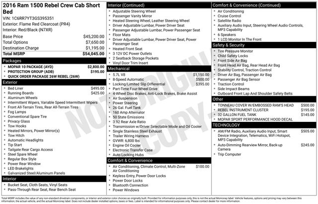 CARFAX One-Owner. Flame Red Clearcoat 2016 Ram HEMI 5.7L V8 Multi Displacement VVT 4D Crew Cab 1500 Rebel 8-Speed Automatic 4WD
