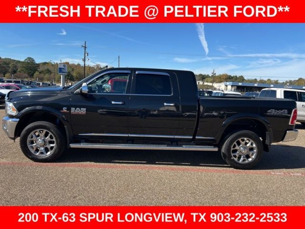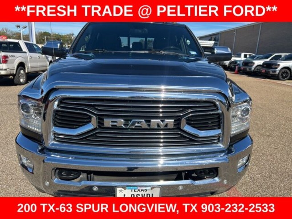 Chrome Bumper Package (Bright Front Bumper and Bright Rear Bumper), Cold Weather Group (Engine Block Heater and Winter Front Grille Cover), Quick Order Package 2FM Limited (115V Auxiliary Power Outlet, 4 Adjustable Cargo Tie-Down Hooks, Auto High Beam Headlamp Control, Bed Cargo Divider/Extender, Body Color Fender Flares, Bucket Seats, Chrome Belt Moldings, Chrome Grille w/RAM Letters, Chrome RAM Tailgate Nameplate, Heated Second Row Seats, Heated Steering Wheel, High Back Seats, Instrument Cluster w/Display Screen, Keyless Enter-N-Go, Laramie Limited Leather Bucket Seats, Leather Wrapped Grab Handle, LED Bed Lighting, Limited Chrome Bodyside Molding, Limited Decor Group, Limited Tailgate Applique 4x4, Locking Tailgate, Luxury Door Trim Panel, Luxury Front & Rear Floor Mats, Painted Front Bumper, Painted Rear Bumper, Power 10-Way Memory Driver & 6-Way Passenger Seats, Power Lumbar Adjust, Rain Sensitive Windshield Wipers, RAM 2500 Badge, RamBox Cargo Management System, Rear 60/40 Split Folding Seat, Remote Proximity Keyless Entry, Steering Wheel Mounted Audio Controls, Vendor Painted Cargo Box Tracking, Ventilated Front Seats, Wheel to Wheel Side Steps, Wheels: 20" x 8.0" Satin Carbon w/Chrome Insert, and Wood/Leather Wrapped Steering Wheel), 10 Speakers, 180 Amp Alternator, 3.42 Axle Ratio, 3.73 Axle Ratio, 4-Wheel Disc Brakes, 5th Wheel/Gooseneck Towing Prep Group, ABS brakes, Adjustable pedals, Air Conditioning, Alloy wheels, AM/FM radio: SiriusXM, Anti-Spin Differential Rear Axle, Audio memory, Auto-dimming door mirrors, Auto-dimming Rear-View mirror, Automatic temperature control, Brake assist, Center Hub, Chrome Exterior Mirrors, Clearance Lamps, Compass, CTR Stop Lamp w/Cargo View Camera, Delay-off headlights, Driver door bin, Driver vanity mirror, Dual front impact airbags, Dual front side impact airbags, Electronic Stability Control, Electronically Controlled Throttle, Emergency communication system: Uconnect Access, Exterior Mirrors Courtesy Lamps, Exterior Mirrors w/Heating Element, Exterior Mirrors w/Memory, Exterior Mirrors w/Supplemental Signals, Front anti-roll bar, Front Bucket Seats, Front Center Armrest w/Storage, Front dual zone A/C, Front fog lights, Front Heavy Duty Shock Absorbers, Front reading lights, Fully automatic headlights, Garage door transmitter, Genuine wood console insert, Genuine wood dashboard insert, Genuine wood door panel insert, Heated door mirrors, Heated Front Seats, Heated front seats, Heated rear seats, Heated steering wheel, Hemi Badge, Illuminated entry, Leather steering wheel, Low tire pressure warning, Manufacturer's Statement of Origin, Memory seat, Navigation System, Next Generation Engine Controller, Occupant sensing airbag, Outside temperature display, Overhead airbag, Overhead console, Panic alarm, ParkView Rear Back-Up Camera, Passenger door bin, Passenger vanity mirror, Pedal memory, Power door mirrors, Power driver seat, Power Folding Chrome Trailer Tow Mirrors, Power passenger seat, Power steering, Power windows, Power-Folding Mirrors, Premium Filigree Leather Seats, Radio data system, Radio: Uconnect 3C Nav w/8.4" Display, RamBox Delete, Rear Heavy Duty Shock Absorbers, Rear seat center armrest, Rear step bumper, Rear Window Defroster, Remote keyless entry, Security system, Single Disc Remote CD Player, Speed control, Split folding rear seat, Steering wheel mounted audio controls, Tachometer, Tilt steering wheel, Tip Start, Traction control, Trailer Tow Mirrors, Trip computer, Turn signal in