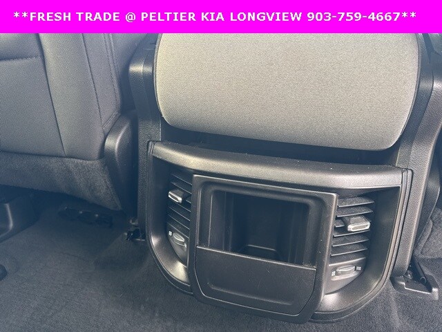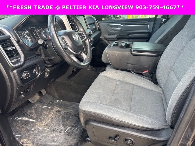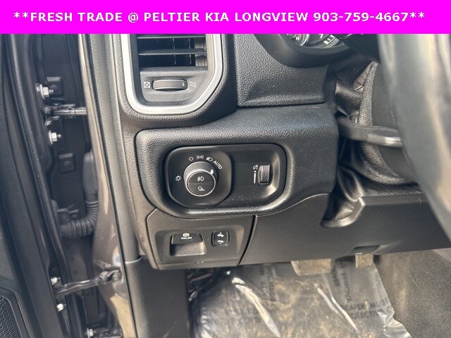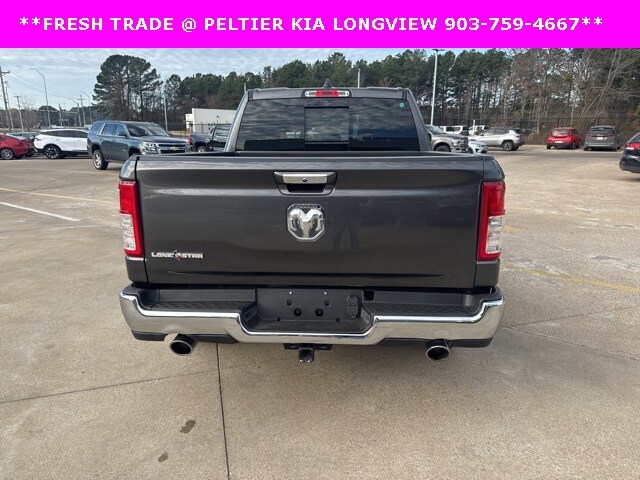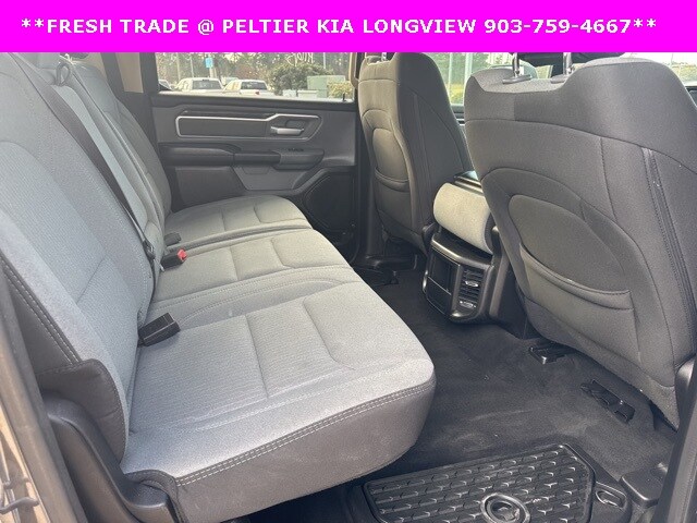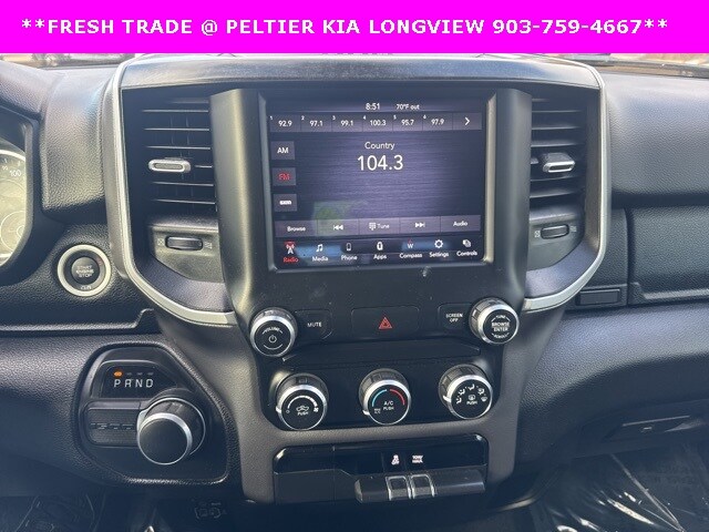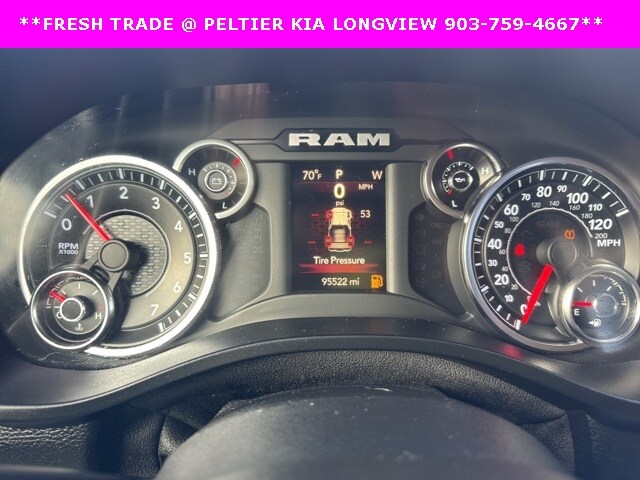 Big Horn Level 1 Equipment Group (Auto-Dimming Rear-View Mirror, Big Horn IP Badge, Black Premium Power Mirrors, Class IV Receiver Hitch, Foam Bottle Insert (Door Trim Panel), Power 4-Way Driver Lumbar Adjust, Power 8-Way Driver Seat, Power Adjustable Pedals, Radio: Uconnect 4 w/8.4" Display, Rear Power Sliding Window, Rear Window Defroster, Sun Visors w/Illuminated Vanity Mirrors, and Universal Garage Door Opener), Quick Order Package 25R Lone Star (Regional) (Lone Star Badge), 3 Rear Seat Head Restraints, 3.21 Rear Axle Ratio, 4 Way Front Headrests, 4-Wheel Disc Brakes, 48V Belt Starter Generator, 6 Speakers, ABS brakes, Air Conditioning, Alloy wheels, AM/FM radio, Anti-Spin Differential Rear Axle, Brake assist, Bumpers: chrome, Cloth Bench Seat, Compass, Delay-off headlights, Driver door bin, Dual front impact airbags, Dual front side impact airbags, Electronic Stability Control, Front & Rear Rubber Floor Mats, Front anti-roll bar, Front Center Armrest w/Storage, Front fog lights, Front reading lights, Front Seat Back Map Pockets, Front wheel independent suspension, Fully automatic headlights, GPS Antenna Input, Heated door mirrors, Illuminated entry, Leather steering wheel, Low tire pressure warning, Occupant sensing airbag, Outside temperature display, Overhead airbag, Overhead console, Panic alarm, ParkView Rear Back-Up Camera, Passenger door bin, Passenger vanity mirror, Power door mirrors, Power steering, Power windows, Radio data system, Radio: Uconnect 3 w/5" Display, Rear 60/40 Folding Seat, Rear anti-roll bar, Rear seat center armrest, Rear step bumper, Remote keyless entry, Remote Start System, Speed control, Split folding rear seat, Steering wheel mounted audio controls, Tachometer, Telescoping steering wheel, Tilt steering wheel, Traction control, Trip computer, Variably intermittent wipers, Voltmeter, and Wheels: 18" x 8" Cast-Aluminum Painted.
