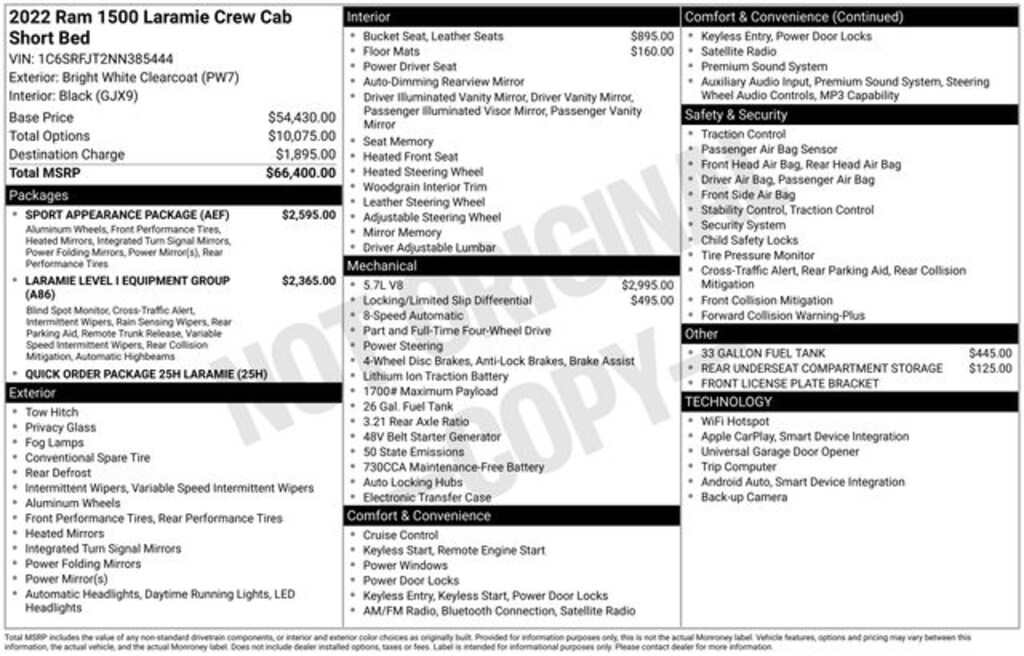Odometer is 6279 miles below market average! 2022 Ram 1500 Laramie HEMI 5.7L V8 Multi Displacement VVT 4WD 8-Speed Automatic Bright White Clearcoat