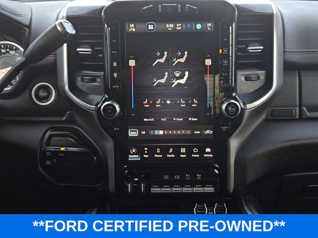 Laramie Level B Equipment Group (DISC) (17 Speaker harman kardon Premium Sound, 2nd Row In Floor Storage Bins, Auto High Beam Headlamp Control, Chrome Exterior Mirrors, Exterior Mirrors Courtesy Lamps, Exterior Mirrors w/Heating Element, Exterior Mirrors w/Memory, Exterior Mirrors w/Supplemental Signals, Foam Bottle Insert (Door Trim Panel), GPS Navigation, Heated Second Row Seats, Mirror Running Lights, Mirror-Mounted Aux Reverse Lamps, Power Adjustable Convex Aux Mirrors, Power Adjustable Pedals w/Memory, Power Chrome Tow Mirrors w/Convex Spotter & Memory, Power Folding Mirrors, Radio: Uconnect 5 Nav w/8.4" Display, Radio/Driver Seat/Mirrors/Pedals Memory, Rain Sensitive Windshield Wipers, Remote Tailgate Release, Trailer Tow Mirrors, 4G LTE Wi-Fi Hot Spot, 8.4" Touchscreen Display, Alexa Built-In, All R1 High Radios, All Radio Equipped Vehicles, Apple CarPlay, Connected Travel & Traffic Services, Connectivity - US/Canada, Disassociated Touchscreen Display, For Details, Visit DriveUconnect.com, For More Info, Call 800-643-2112, Global Telematics Box Module (TBM), Google Android Auto, GPS Antenna Input, HD Radio, Integrated Center Stack Radio, Integrated Voice Command w/Bluetooth, Off-Road Information Pages, Selectable Tire Fill Alert, SiriusXM Radio Service, and SiriusXM w/360L), Night Edition (Black Exterior Mirrors, Black Exterior Truck Badging, Black Headlamp Bezels, Black Interior Accents, Black Ram Head Tailgate Badge, Black Tail Lamp Bezels, Body Color Door Handles, Body Color Grille Surround, Gloss Black Grille Billets/Accents, Painted Front Bumper, Painted Rear Bumper, Power Black Tow Mirrors w/Convex Spotter & Memory, Wheels: 20" x 8.0" Black Painted Aluminum, and Black Wheel Center Hub), Quick Order Package 2HH L