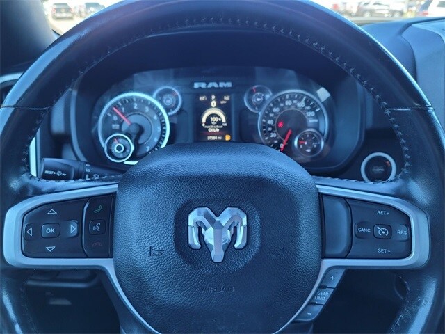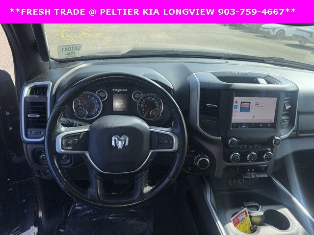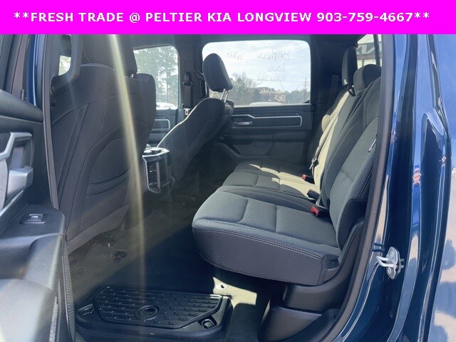 Big Horn Level 1 Equipment Group (2nd Row In Floor Storage Bins, 8.4" Touchscreen Display, Apple CarPlay, Black Exterior Mirrors, Black Premium Power Mirrors, Class IV Receiver Hitch, Connectivity - US/Canada, Convex Wide-Angle Exterior Mirror Insert, Exterior Mirrors Courtesy Lamps, Exterior Mirrors w/Heating Element, For Details, Visit DriveUconnect.com, GPS Antenna Input, Heated Front Seats, Heated Steering Wheel, Power-Folding Mirrors, Radio: Uconnect 5 W w/8.4" Display, Rear Dome w/On/Off Switch Lamp, Rear Power Sliding Window, and USB Host Flip), Quick Order Package 27Z Big Horn, Sport Appearance Package (3 Rear Seat Head Restraints, 4 Way Front Headrests, Body Color Exterior Mirrors, Body Color Front Bumper, Body Color Premium Power Mirrors, Body Color Rear Bumper w/Step Pads, Bucket Seats, Center Console Parts Module, Deluxe Cloth Bucket Seats, Front Seat Back Map Pockets, Full Length Floor Console, RAM Grille Badge - Chrome, Rear 60/40 Folding Seat, and Sport Decal), 3.21 Rear Axle Ratio, 4-Wheel Disc Brakes, 48V Belt Starter Generator, 6 Speakers, ABS brakes, Air Conditioning, Alloy wheels, AM/FM radio, Anti-Spin Differential Rear Axle, Brake assist, Bumpers: chrome, Cloth Bench Seat, Compass, Delay-off headlights, Driver door bin, Dual front impact airbags, Dual front side impact airbags, Electronic Stability Control, Emergency communication system: SiriusXM Guardian, Exterior Parking Camera Rear, Front anti-roll bar, Front Center Armrest w/Storage, Front reading lights, Front wheel independent suspension, Fully automatic headlights, Global Telematics Box Module (TBM), Heated door mirrors, Illuminated entry, Integrated Voice Command w/Bluetooth, Leather steering wheel, Low tire pressure warning, MOPAR Front & Rear Rubber Floor Mats, Occupant sensing airbag, Outside temperature display, Overhead airbag, Overhead console, Panic alarm, Passenger door bin, Passenger vanity mirror, Power door mirrors, Power steering, Power windows, Radio data system, Radio: Uconnect 3 w/5" Display, Rear anti-roll bar, Rear seat center armrest, Rear step bumper, Remote keyless entry, Remote Start System, Speed control, Split folding rear seat, Steering wheel mounted audio controls, Tachometer, Telescoping steering wheel, Tilt steering wheel, Traction control, Trip computer, Variably intermittent wipers, Voltmeter, Wheels: 18" x 8" Cast-Aluminum Painted, and Wheels: 20" x 9" Aluminum Chrome Clad (WRK)