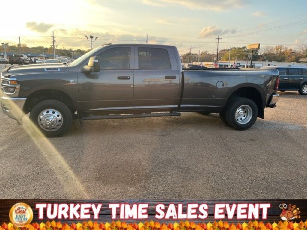 Max Tow Package (5th Wheel/Gooseneck Towing Prep Group), Quick Order Package 24A Tradesman, Tradesman Level 2 Equipment Group (115V Auxiliary Front Power Outlet, 12" Touchscreen Display, 2 Way Rear Headrest Seat, 4 Way Front Headrests, 40/20/40 Split Bench Seat, 4G LTE Wi-Fi Hot Spot, Alexa Built-In, Apple CarPlay, Black Exterior Mirrors, Carpet Floor Covering, Cloth 40/20/40 Bench Seat, Connected Travel & Traffic Services, Connectivity - US/Canada, Convenience Group, Exterior 115V AC Outlet, Exterior Mirrors w/Heating Element, Front Armrest w/Cupholders, Global Telematics Box Module (TBM), Google Android Auto, GPS Antenna Input, HD Radio, Integrated Voice Command w/Bluetooth, Manual Adjust 4-Way Driver Seat, Manual Adjust 4-Way Front Passenger Seat, Manual Folding Exterior Mirrors, Manual Telescoping Mirrors, Mopar Black Tubular Side Steps, Power Adjust Mirrors, Power Heat Fold Telescopic Mirrors, Radio: Uconnect 5 Nav w/12.0" Display, Rear Folding Seat, Remote USB Port - Charge Only, Selectable Tire Fill Alert, SiriusXM Radio Service, SiriusXM w/360L, Storage Tray, and Tinted Acoustic Windshield Glass), 3.42 Axle Ratio, 3.73 Axle Ratio, 4-Wheel Disc Brakes, 50 Gallon Fuel Tank, 6 Speakers, ABS brakes, Air Conditioning, AM/FM radio: SiriusXM, Apple CarPlay/Android Auto, Black Wheel Center Hub, Brake assist, Clearance Lamps, Compass, Delay-off headlights, Driver door bin, Dual front impact airbags, Dual front side impact airbags, Dual Rear Wheels, Electronic Stability Control, Front anti-roll bar, Front Center Armrest w/Storage, Front fog lights, Front License Plate Bracket, Front reading lights, Fully automatic headlights, HD Vinyl 40/20/40 Split Bench Seat, Illuminated entry, Low tire pressure warning, Occupant sensing airbag, Outside temperature display, Overhead airbag, Overhead console, Panic alarm, ParkView Rear Back-Up Camera, Passenger door bin, Passenger vanity mirror, Power steering, Power windows, Radio data system, Radio: Uconnect 5 w/8.4" Display, Rear step bumper, Rear Wheelhouse Liners, Rear window defroster, Remote keyless entry, Speed control, Tachometer, Tilt steering wheel, Traction control, Variably intermittent wipers, Voltmeter, Wheels: 17" x 6.0" Polished Aluminum, and Wheels: 18" x 8.0" Black Painted Steel.