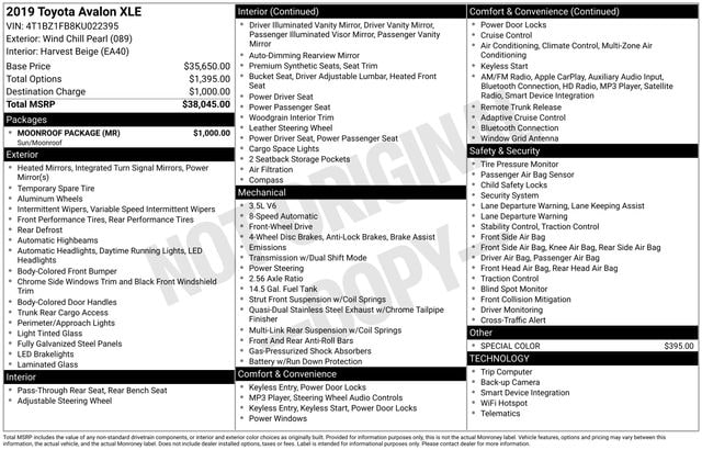 This 2019 Toyota Avalon XLE comes equipped with a impressive list of features, including:
